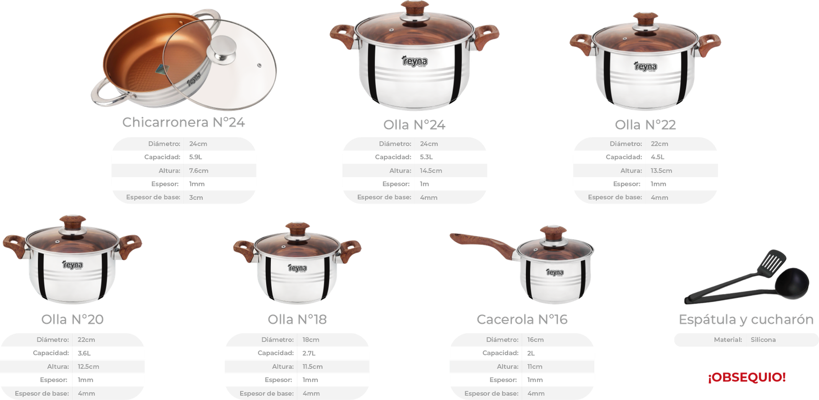 JUEGO DE OLLAS REYNA CRIOLLA 12PZ ACERO INOXIDABLE